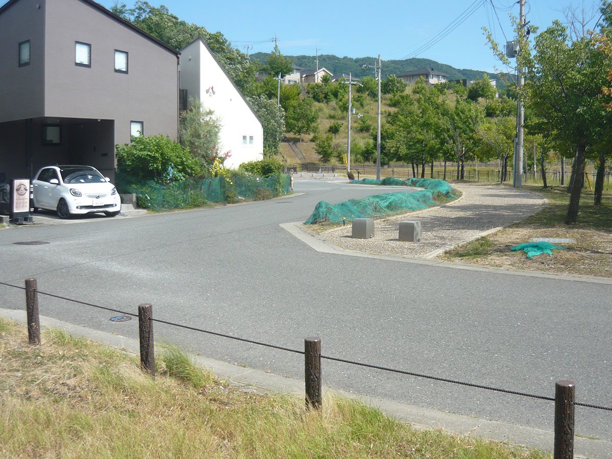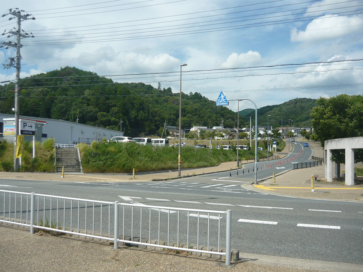 豊能町より阪急バス箕面森町出張所の角、トライアルの看板手前を左折。